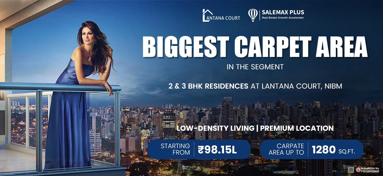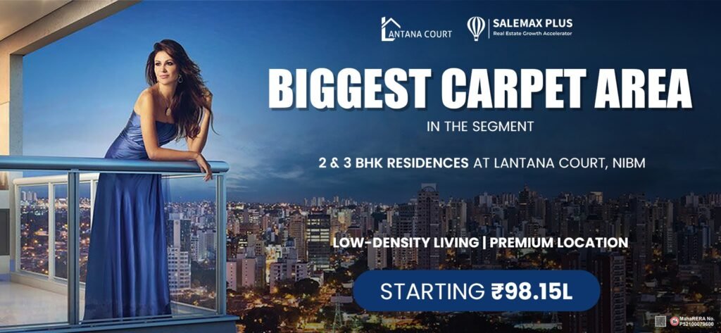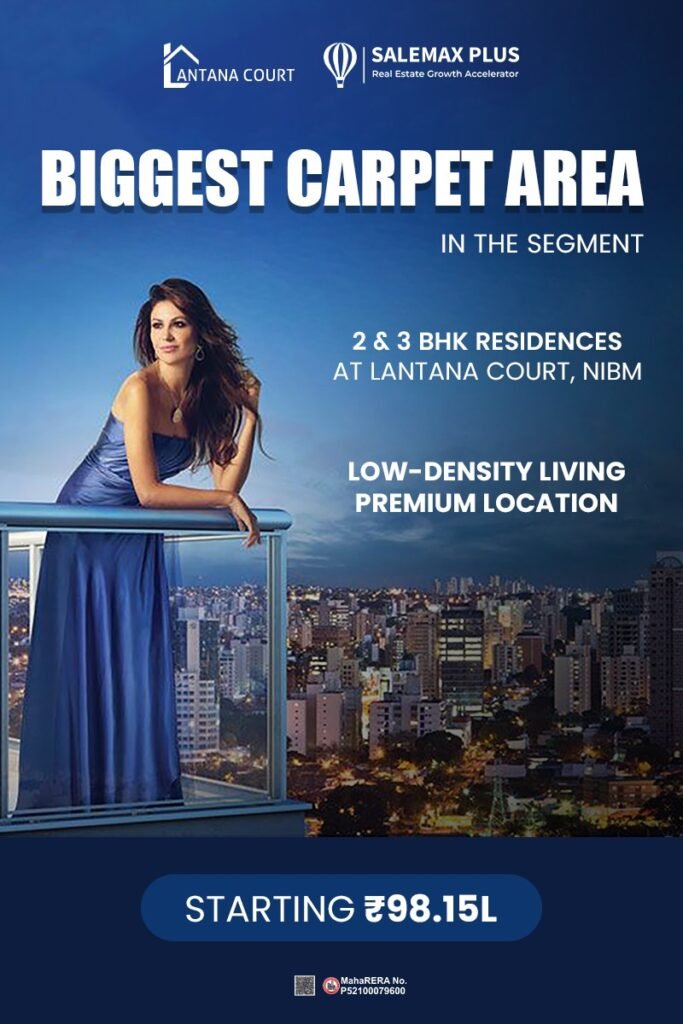 Introducing Lantana Court, NIBM – a premium residential community offering spacious 2 & 3 BHK homes with the largest carpet area in the segment. Thoughtfully designed layouts, elegant interiors, and low-density living ensure privacy, comfort, and sophistication for every family.